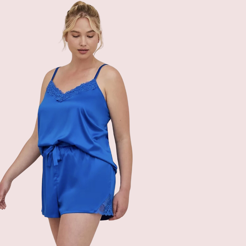 Indulge in luxury with our Lace Trim Satin Short Camisole Set, designed to combine elegance with comfort. Crafted from smooth satin fabric, this camisole set features delicate lace trim that adds a touch of sophistication. The camisole offers a flattering fit with adjustable straps for personalized comfort, while the matching shorts provide a perfect complement. Ideal for lounging or sleepwear, this set ensures a luxurious feel and effortless style. Embrace relaxation and elegance in our Lace Trim Satin Short Camisole Set, perfect for enhancing your nighttime wardrobe with refined charm.